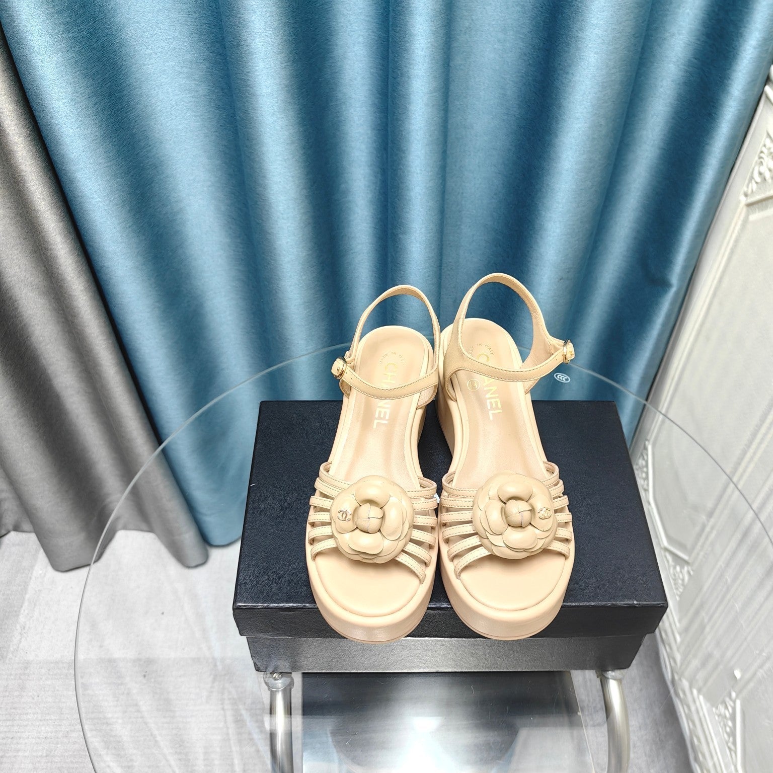 Camellia Slide Wedge Sandal Beige Cream Lambskin