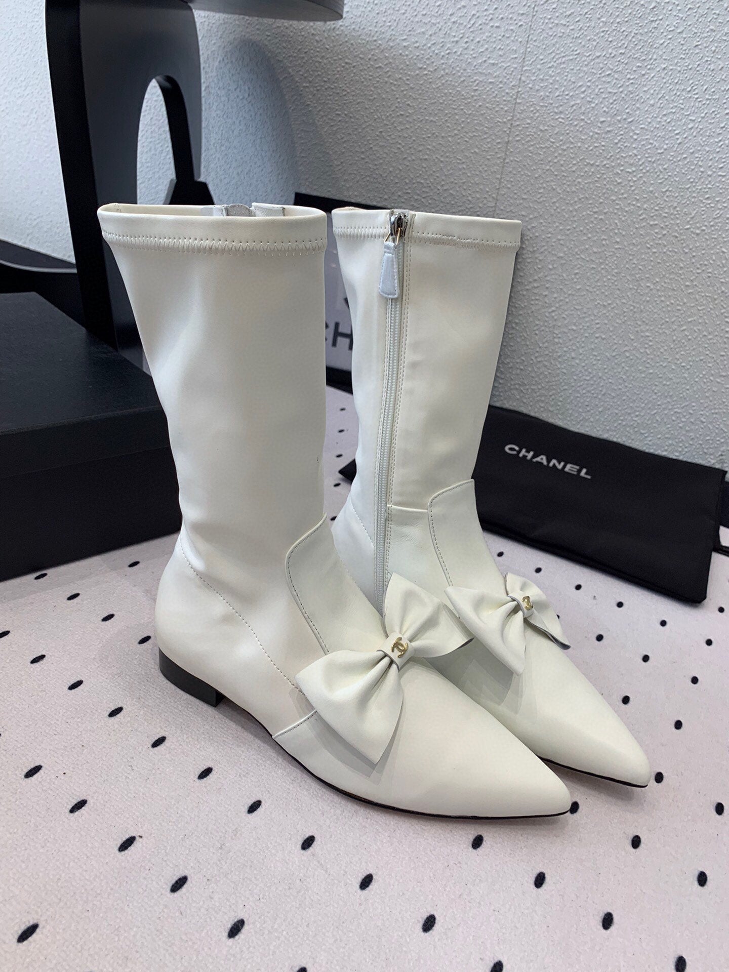 CC 25 Bow-knot Short Boot White Sheepskin 514064