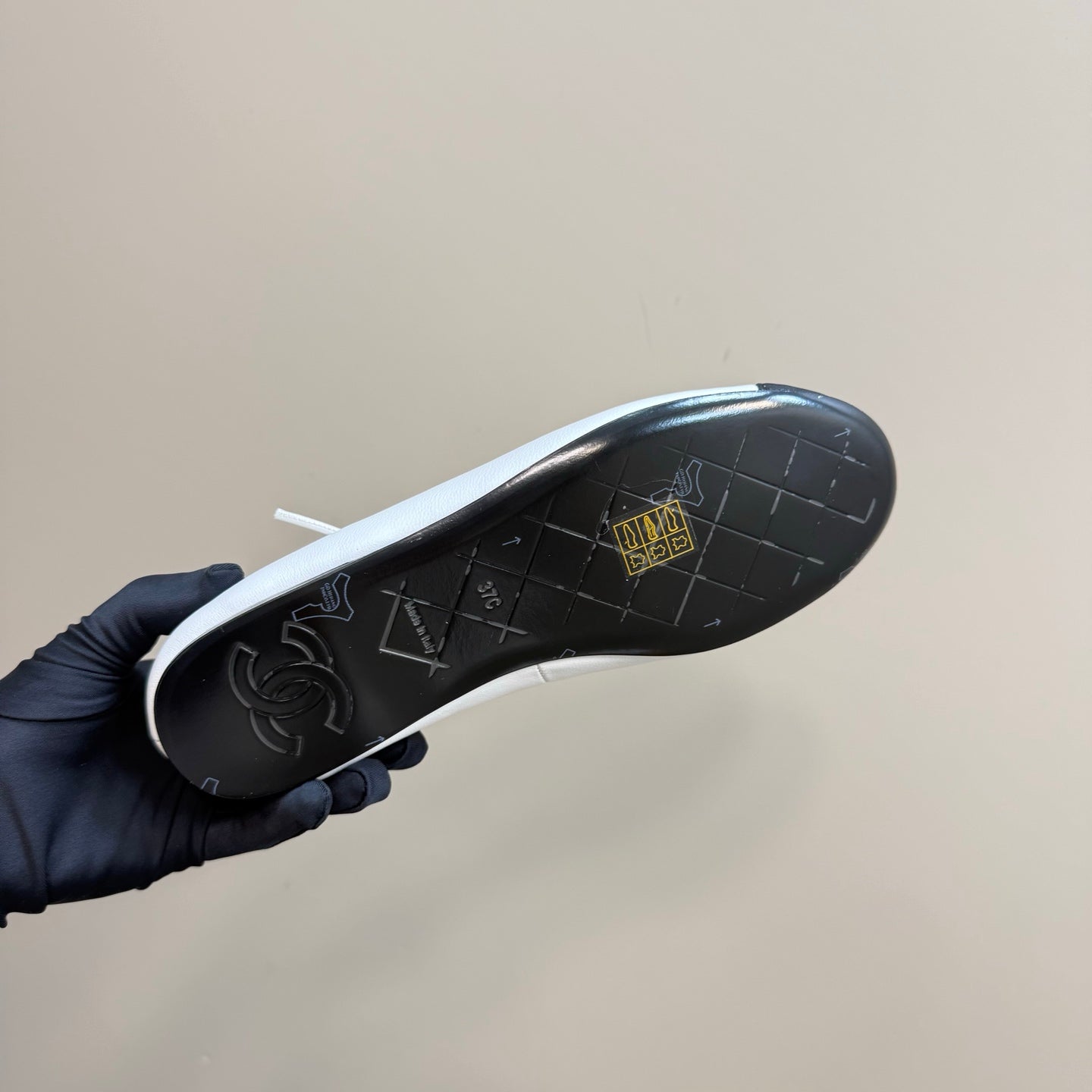 CC 25 Mary Jane Flat White Leather with Fabric 239409