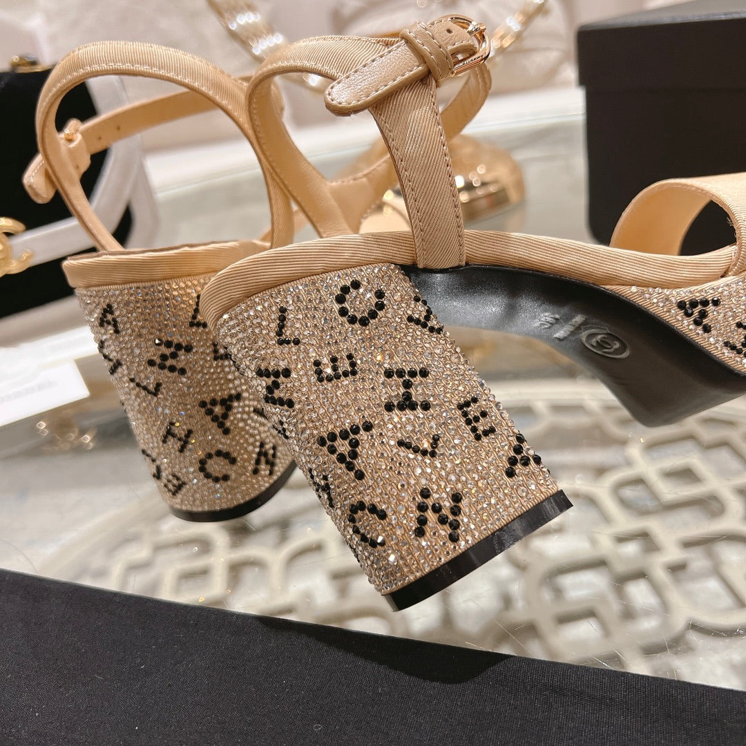 CC 25C 10CM Mid Heed Sandals Cream Fabric 213326