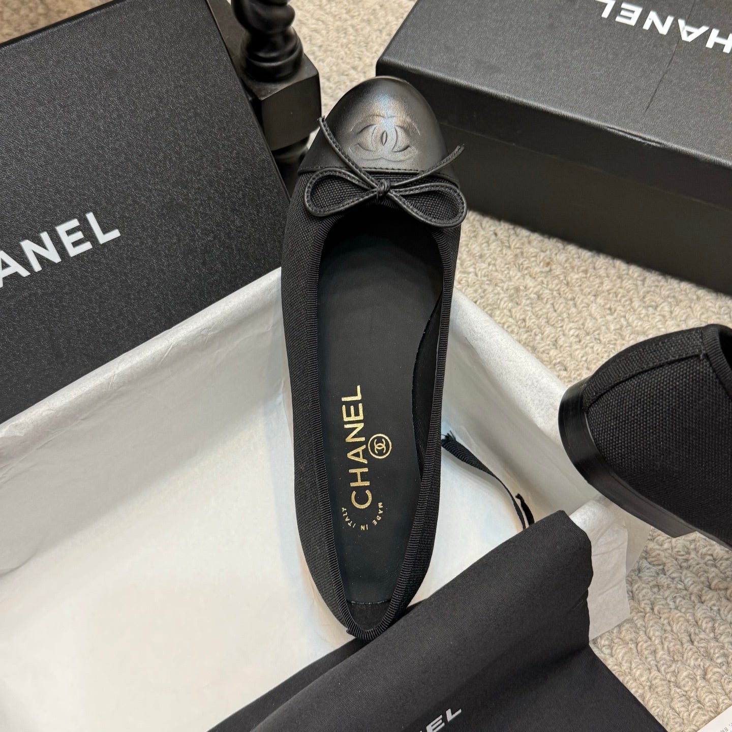 CC 25p Ballet Flat Black Canvas Calfskin