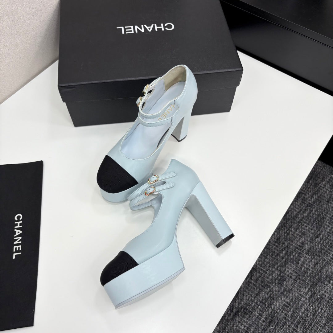 CC 25S Mary Jane Platform 11cm Cloud Blue Calfskin Grosgrain