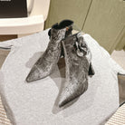 CC Ankle Boots 85mm Silver Rough Velvet Fabric