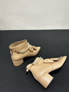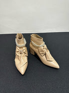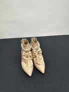 CC Ankle Boots Beige Bow Tie Cowhide
