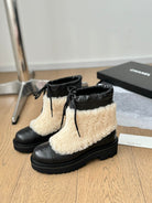 CC Ankle Boots Black Mix Light Beige Calfskin And Fleece