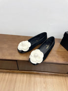 CC Ballet Flats Black With Camellia White Suede