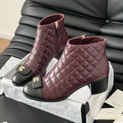 CC SHORT BOOTS 65 MM IN SANGRIA PURPLE MIX BLACK QUILTED PATTERN LAMBSKIN
