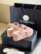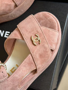 CC CLASSIC WEDGE SANDALS IN LIGHT PINK LAMBSKIN SUEDE