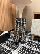 CC High Boots In White Mix Black Wool Tweed And Lambskin