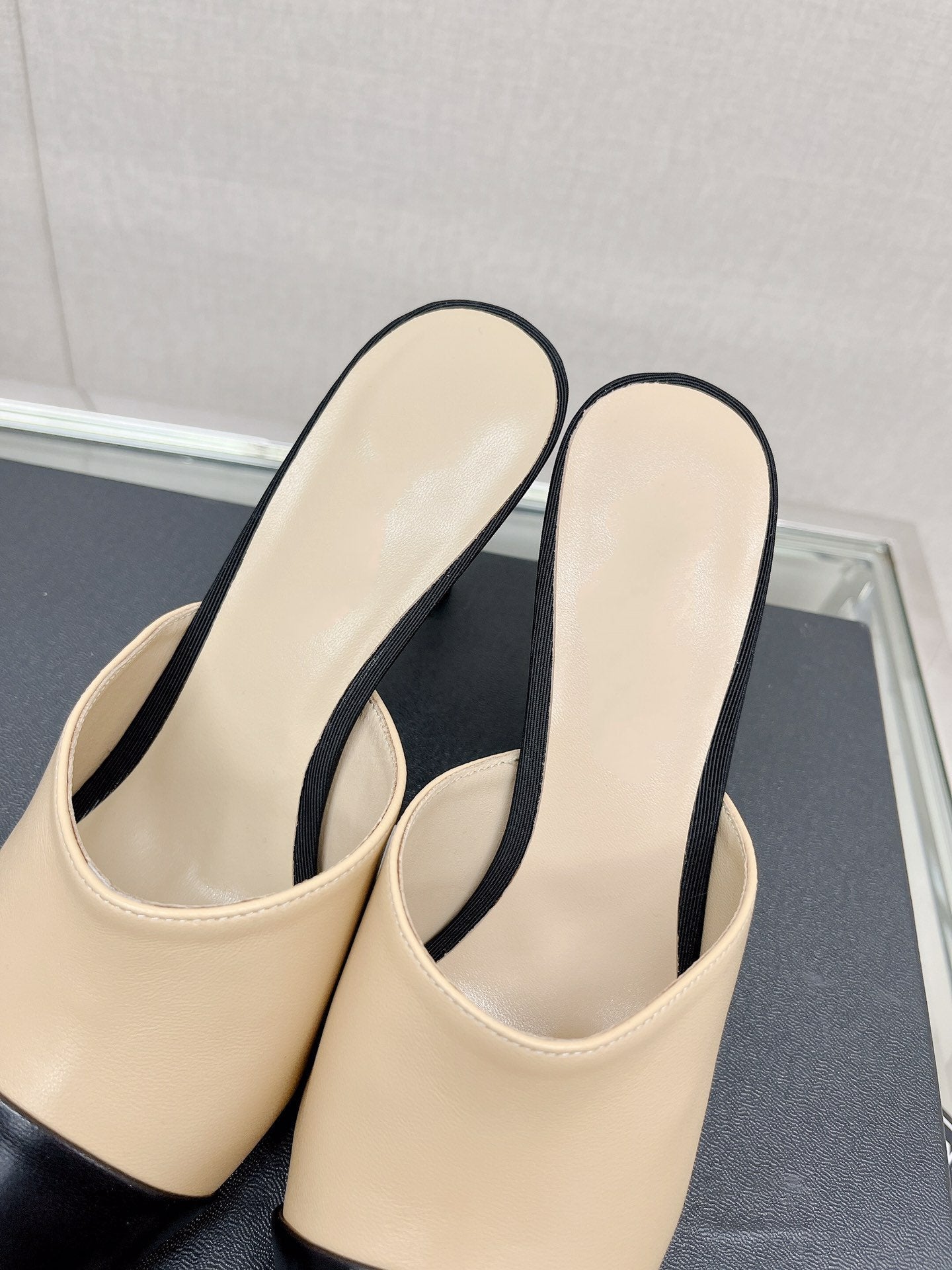cc high heel 85 mule beige black lambskin