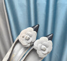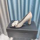 CC HIGH HEELS 80 MM IN SPANISH GRAY SUEDE AND BLACK CALFSKIN WITH FLOWER