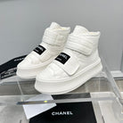 CC High Top Sneaker Thick-Soled White Rain Velvet Fabric