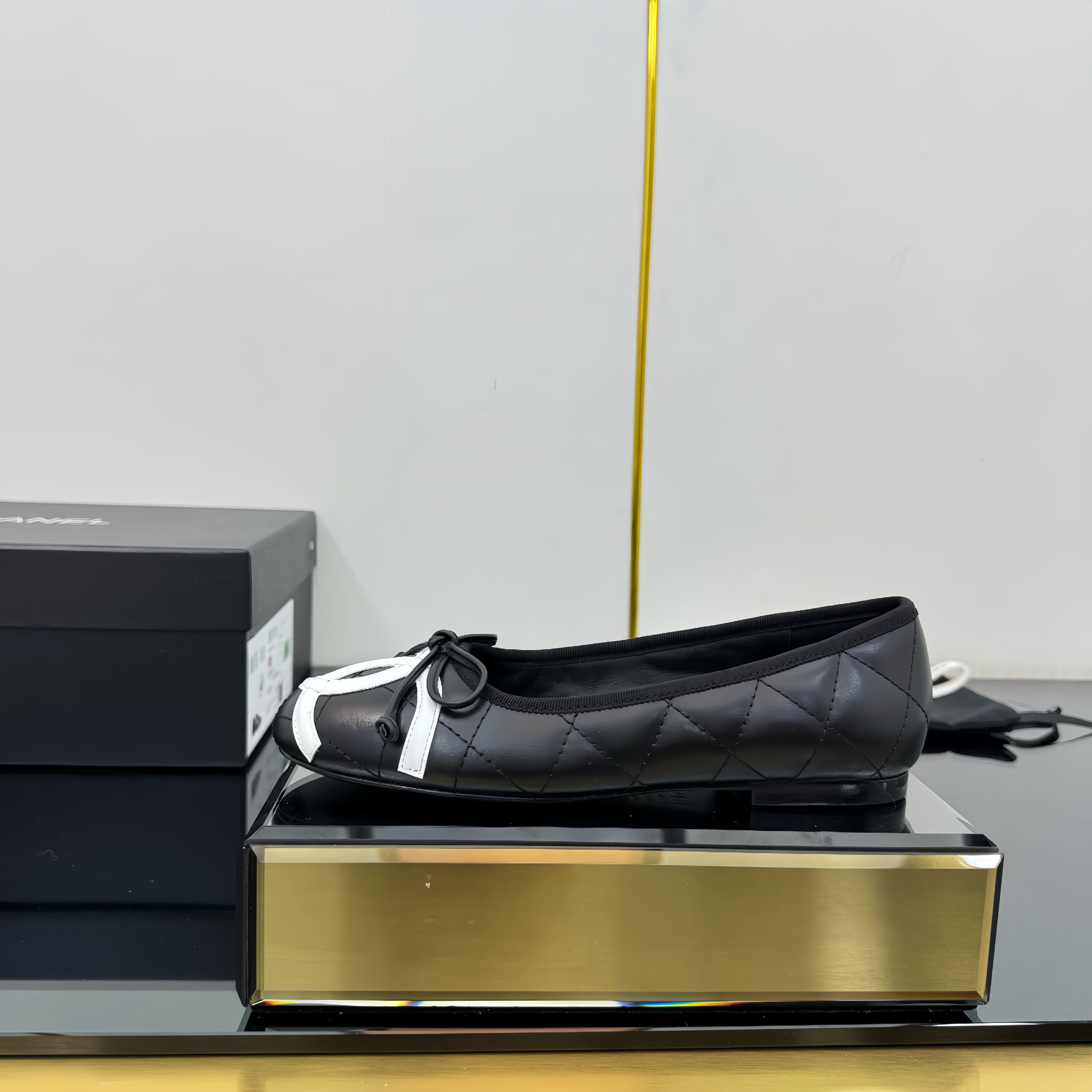 CC Loafers Black/White Sheepskin Mix Bow 297794