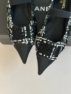 CC MARY JANE IN BLACK MIX WHITE WOOL TWEED