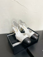 CC Mary Janes 55mm In White Mix Black Quilted Lambskin 949765