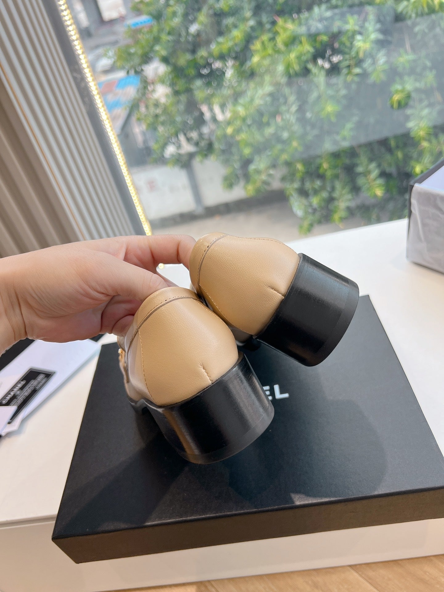 CC Moccasins Beige Chain Lambskin