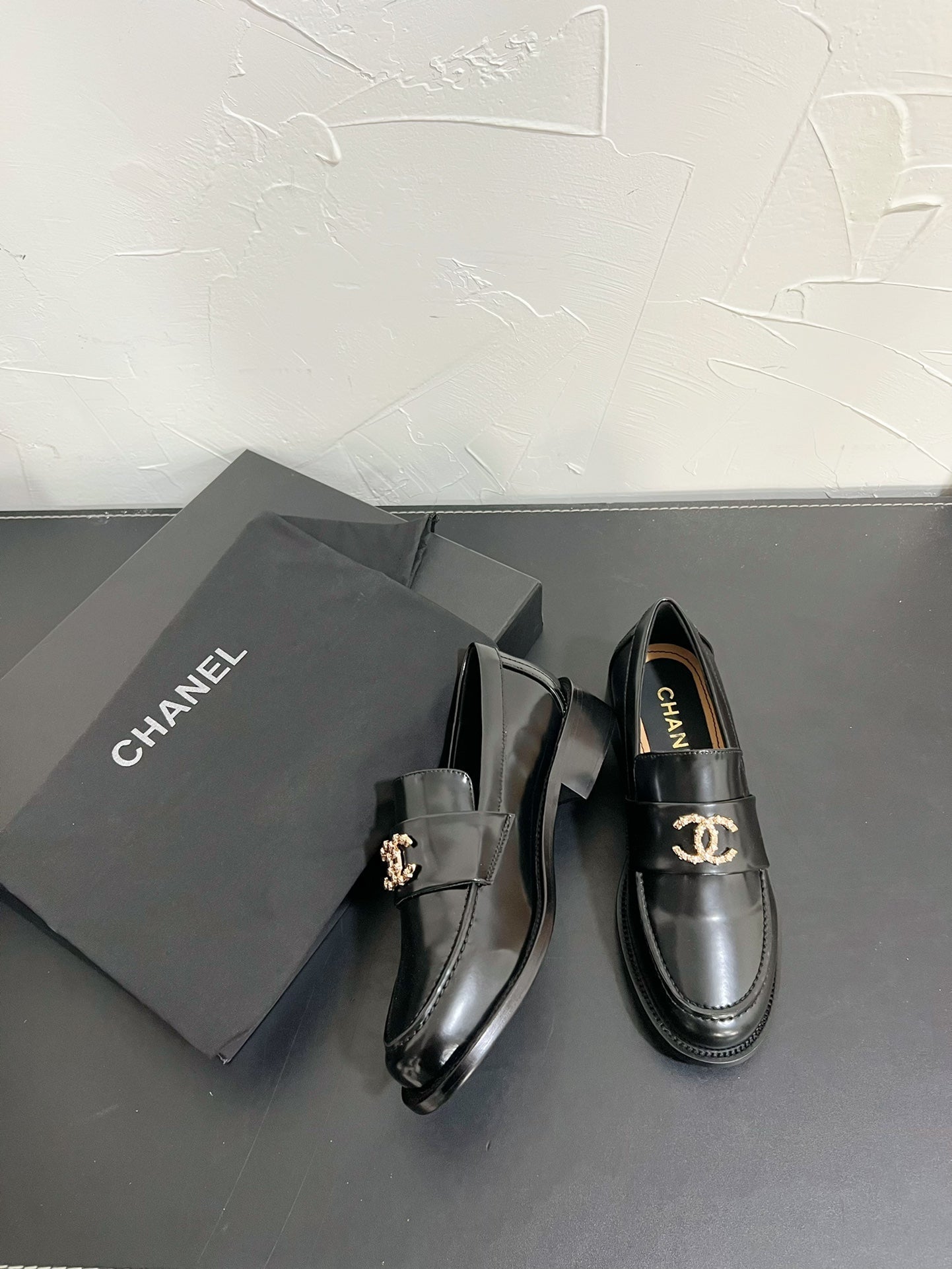 CC Moccasins Glossy Black Calfskin 949655