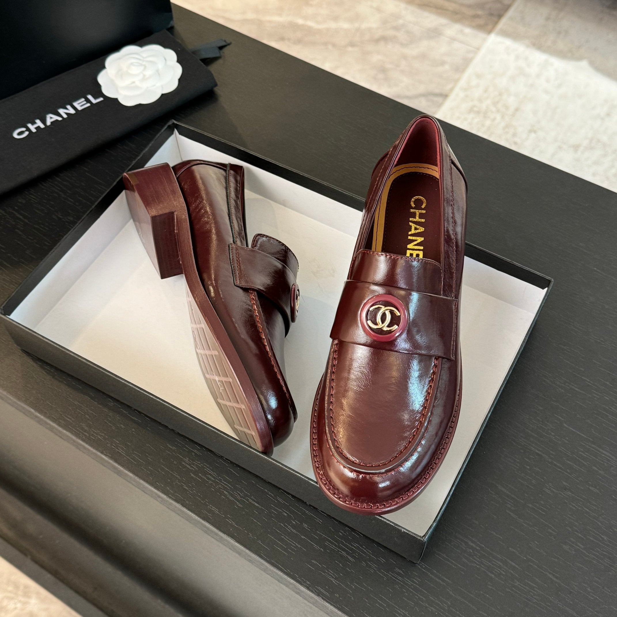 CC Moccasins Glossy Reddish Brown Cowhide