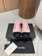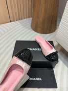cc mule pink tweed sequin black patent calfskin