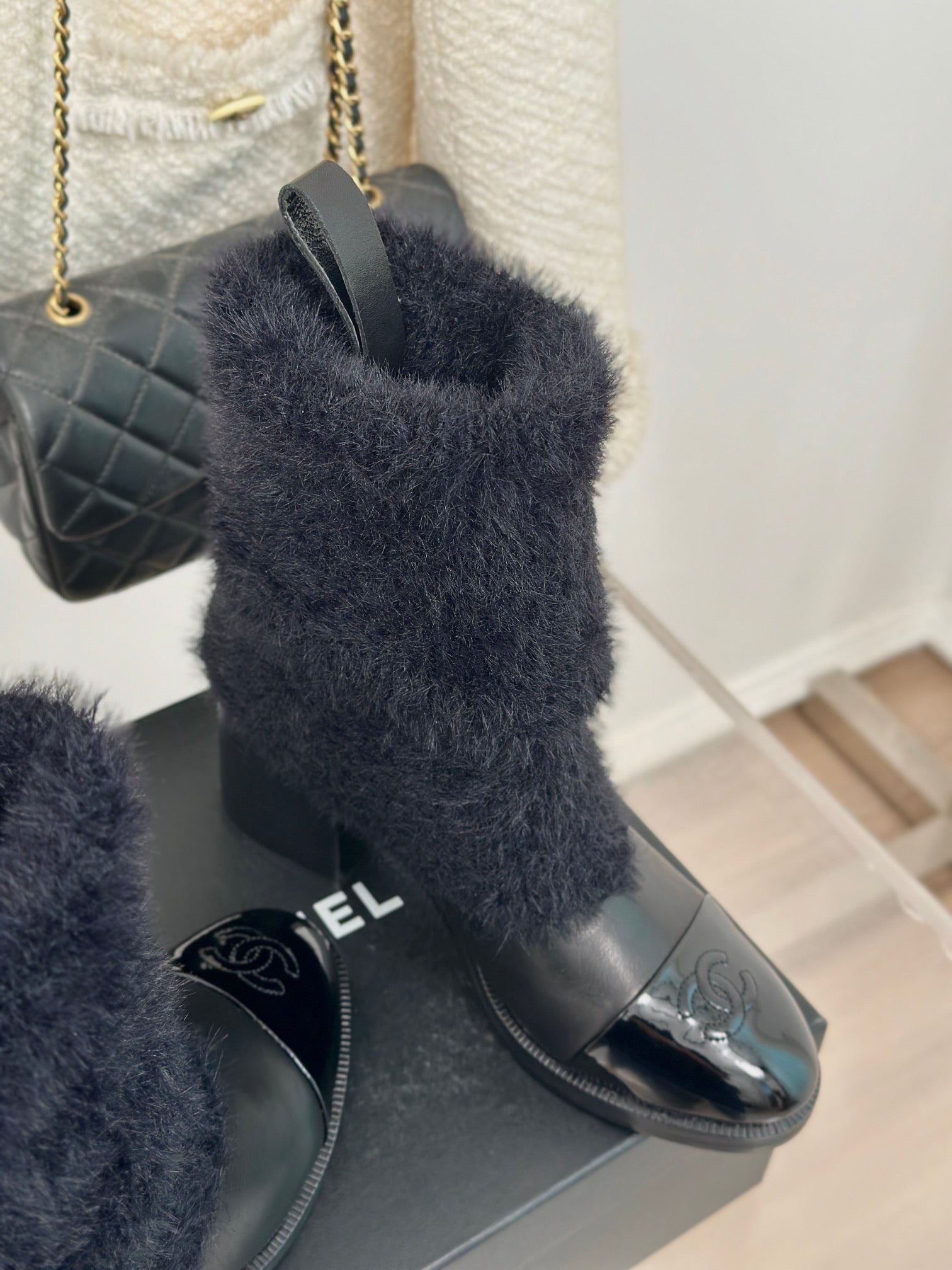 CC Short Boots 60mm Black Cowhide And Wool Yarn