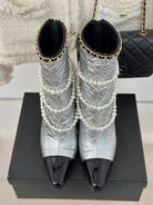 CC Short Boots 80mm Silver Wrinkled Quilted Calfskin