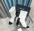CC Short Boots 80mm White Wool Fabric And Lambskin