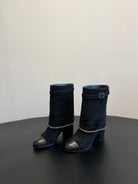 CC Short Boots Black With Chain Suede And Cowhide 944963