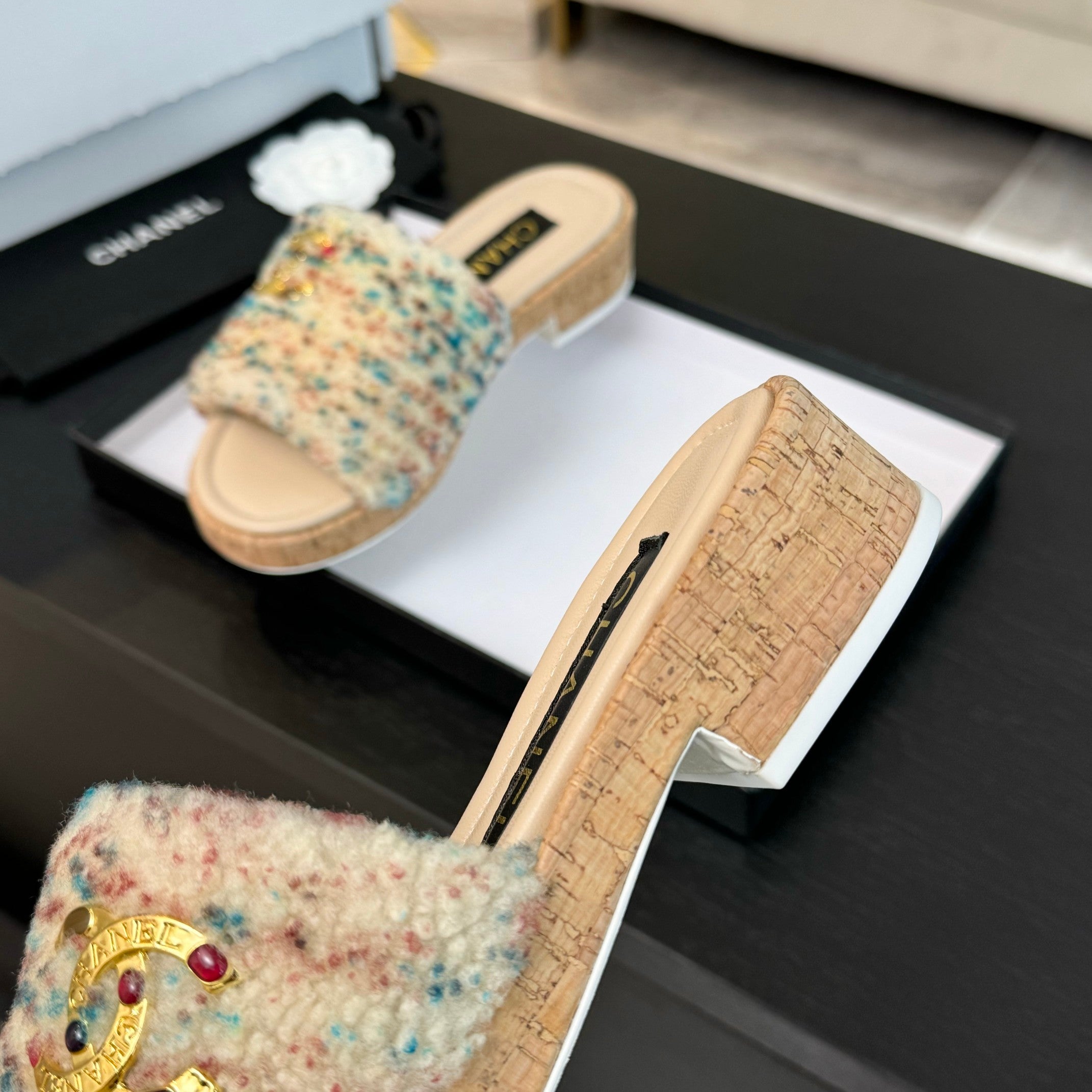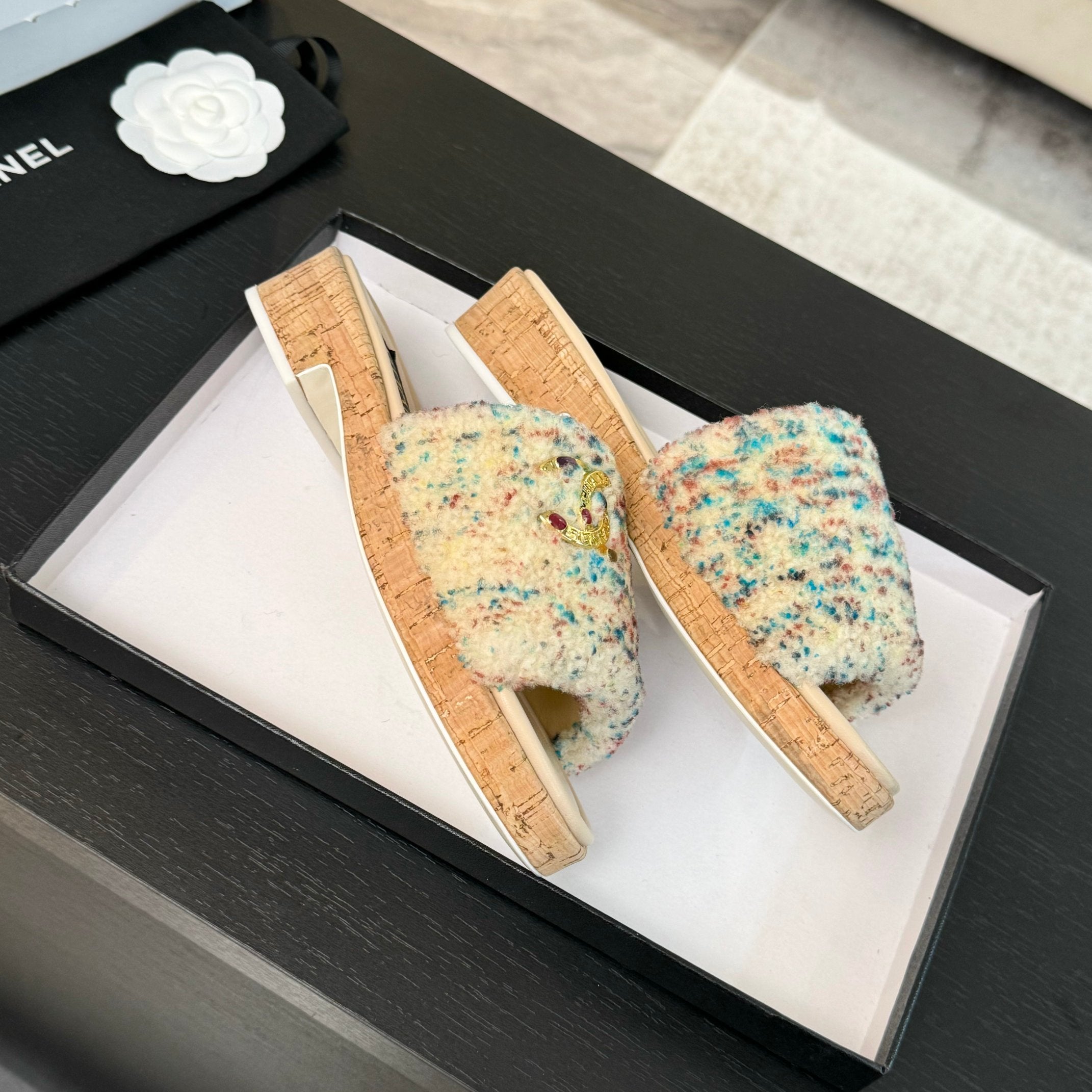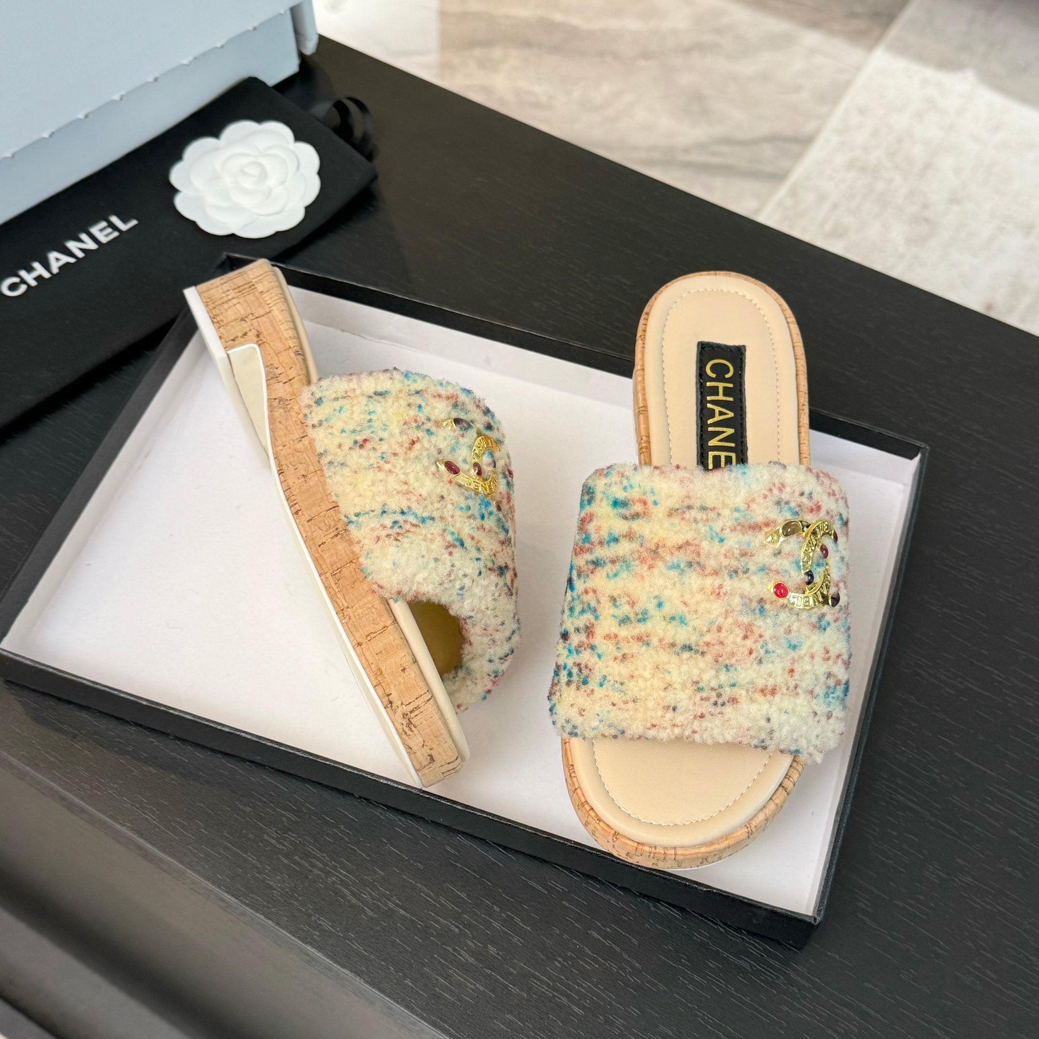 CC Slippers Beige Mix Blue Red Wool And Calfskin