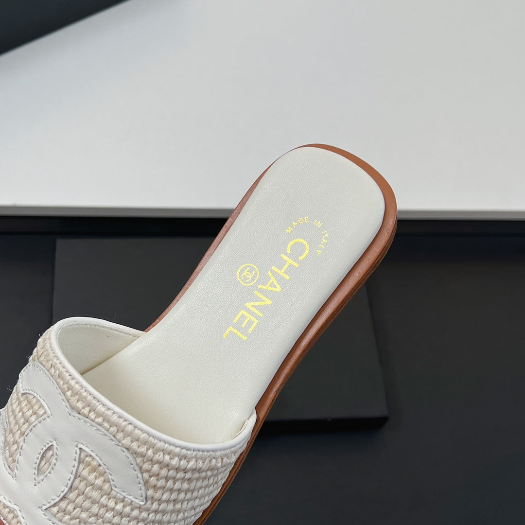 CC Slippers In White Palm Fiber 149736
