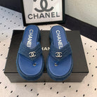 CC Thong Slippers In Navy Blue Denim Fabric 147052