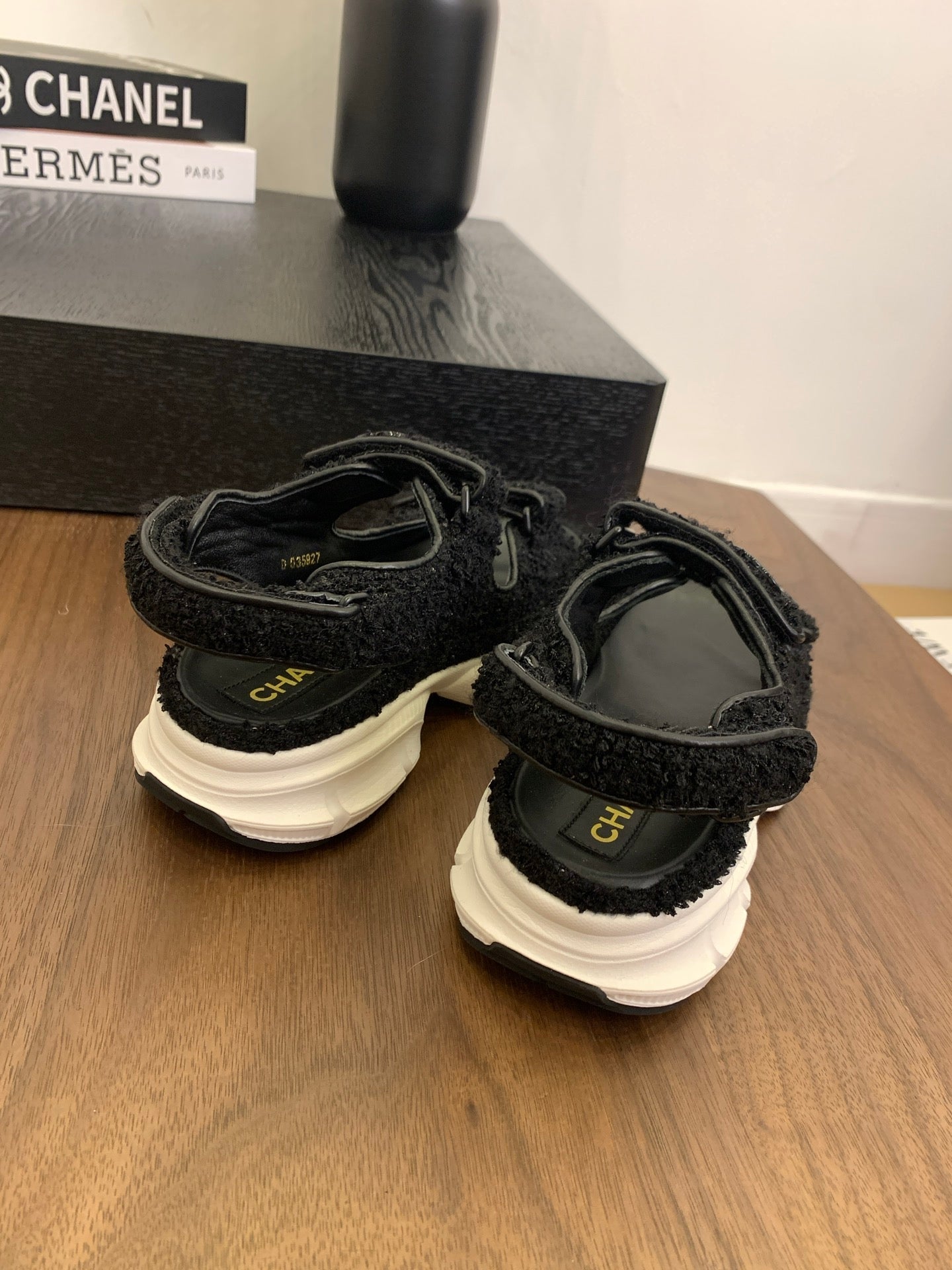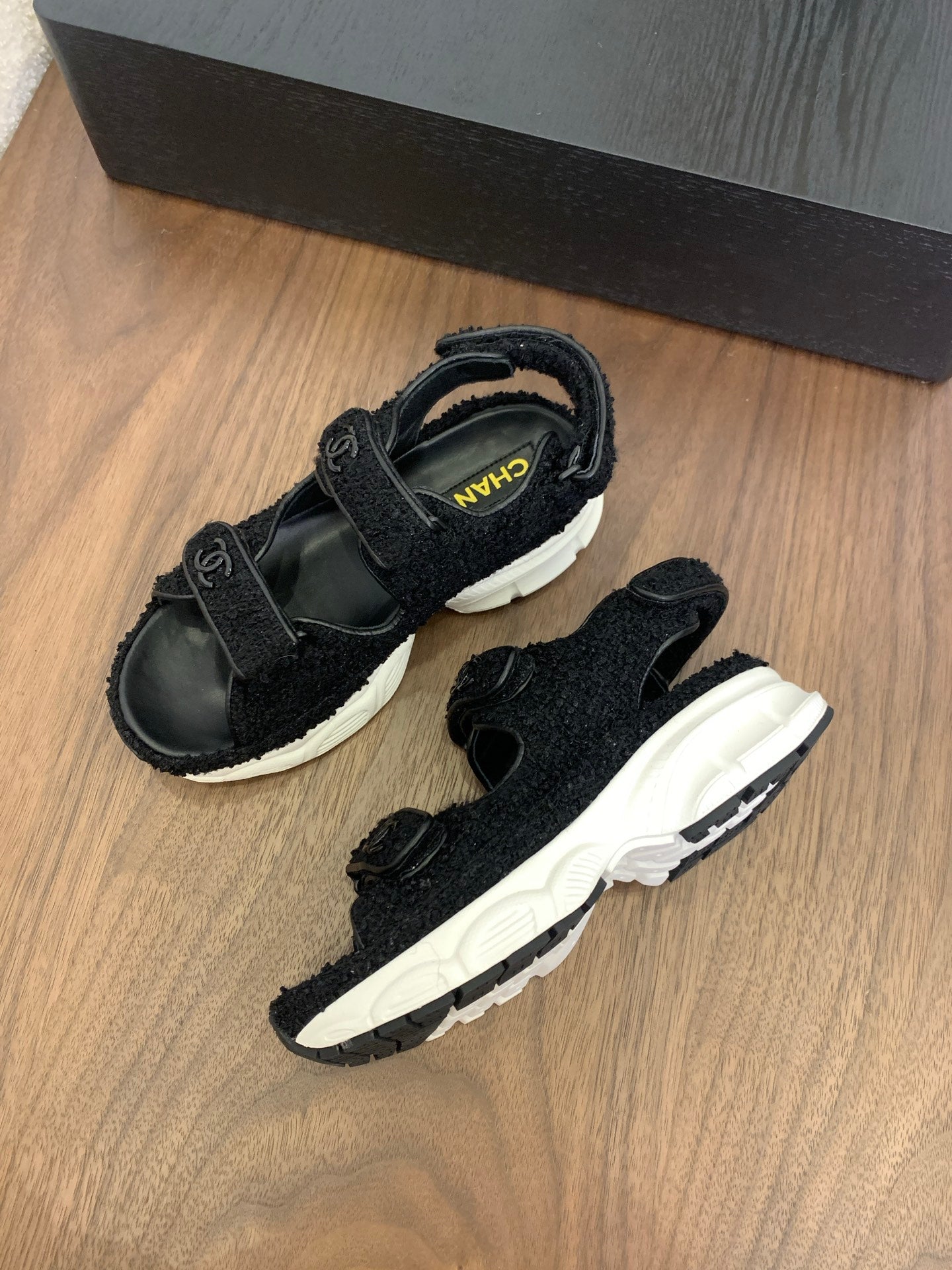 CC Toe Sandals Black Tweed Mix Leather 299540