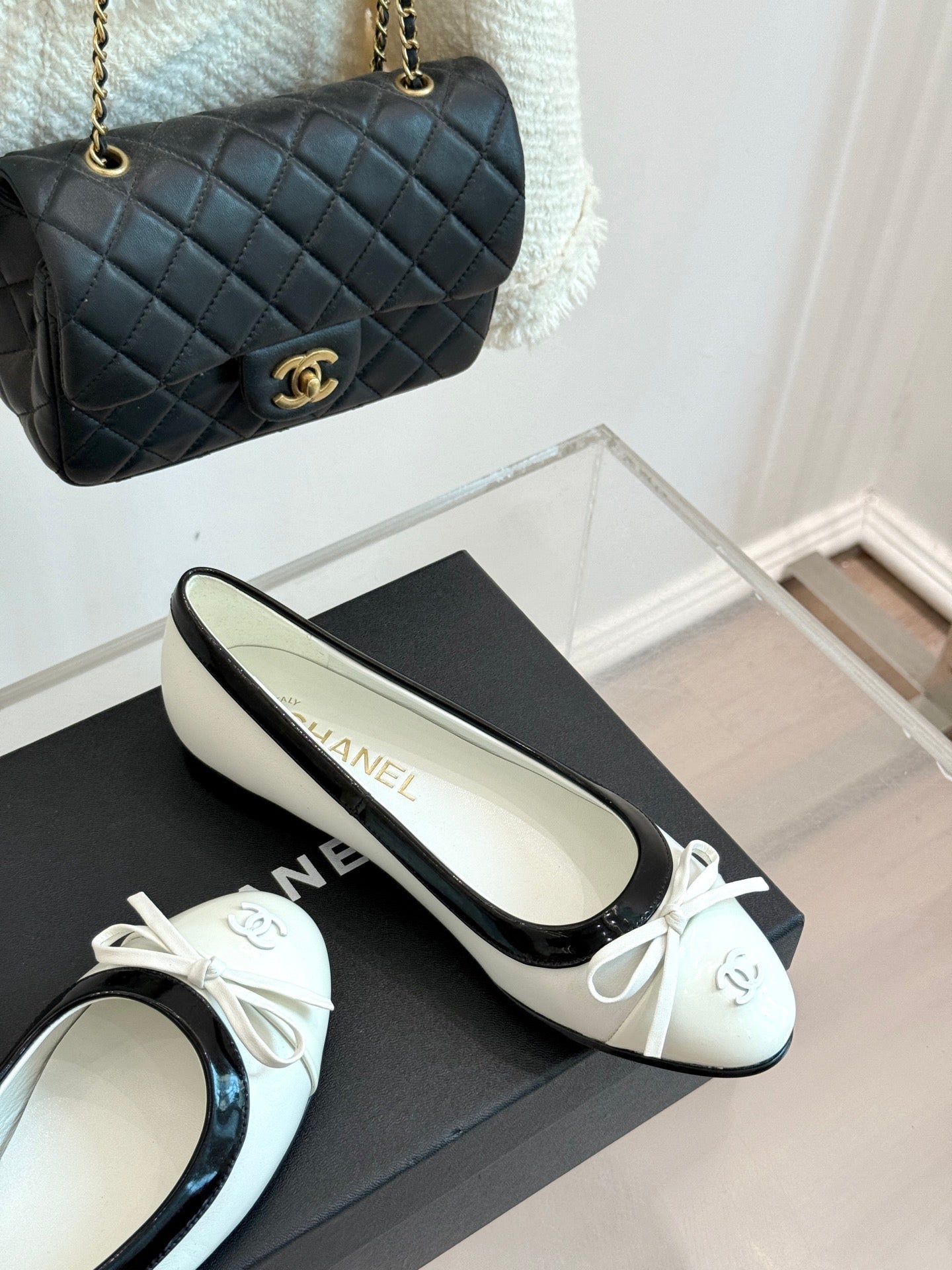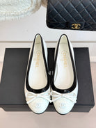Chanel 25 Bowknot Ballet Flat White Black Sheepskin 473065