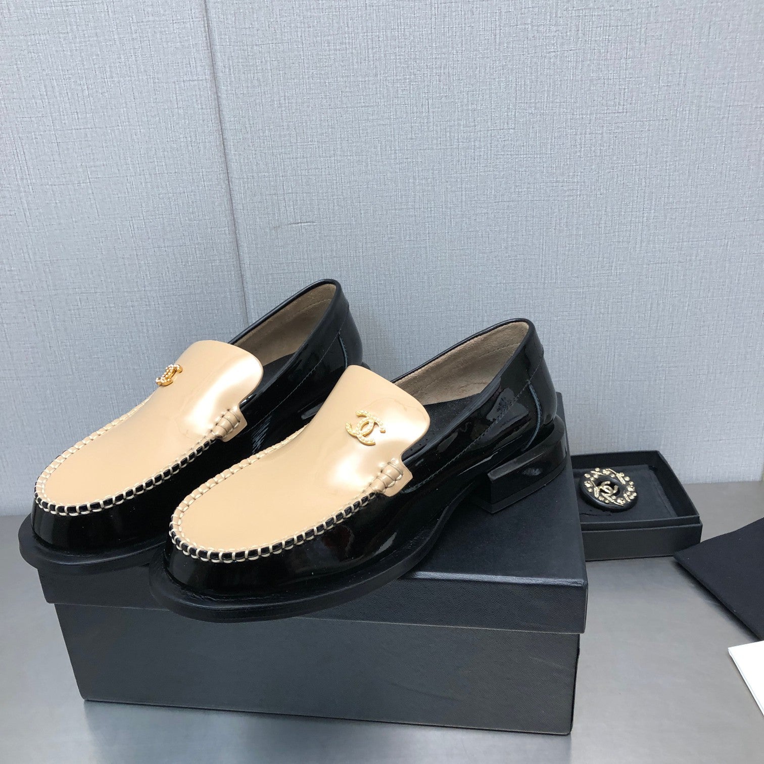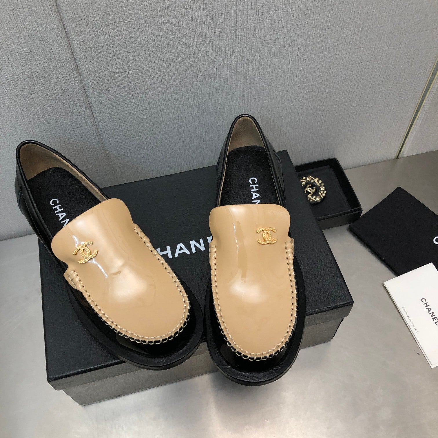 Double C Beige Cream Loafers Sheepskin