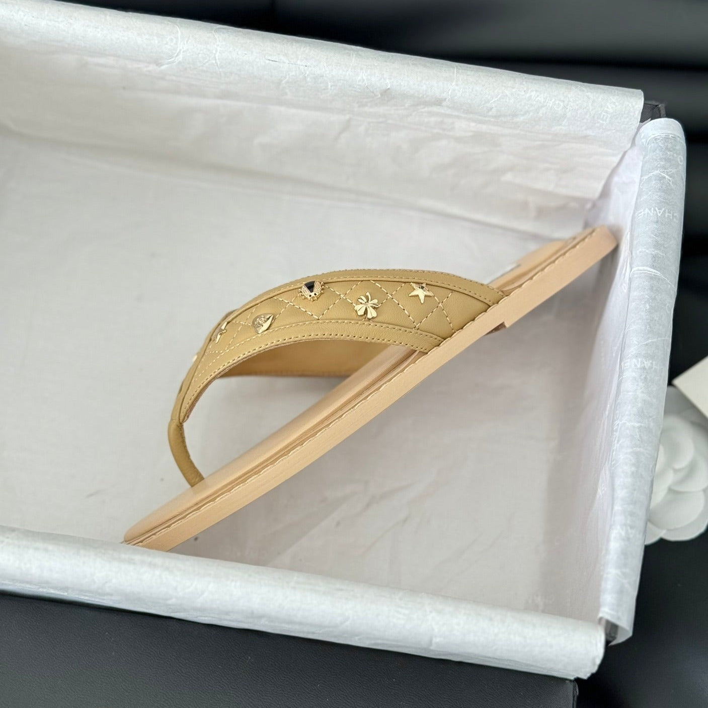 Double C Thong Sandals Lambskin Tan Brown