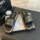 Double C Wood Grain Platform Slippers Black Sheepskin