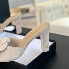 mule sandal flower high heel 80 beige suede