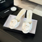 mule sandal flower high heel 80 white suede