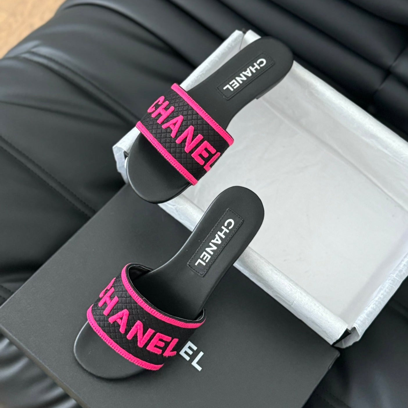 Woven Embroidered Letter Slippers Black Pink
