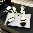 CC 25S Slingback 85mm White Calfskin Black Grosgrain