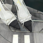 Slingback 50 White Calfskin Black Satin Pointed Toe