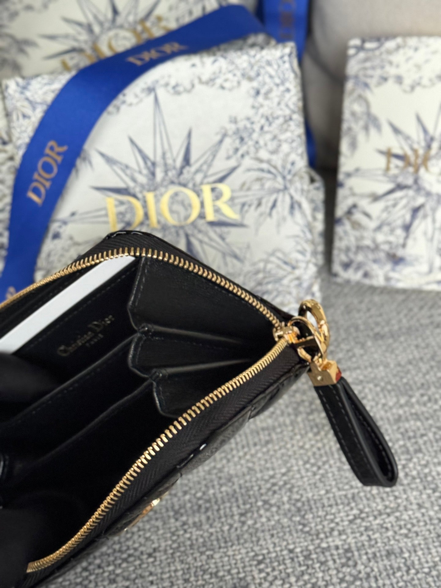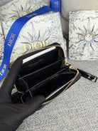 CD Logo Caro 11cm Compact Wallet Shiny Black Calfskin
