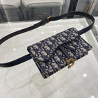 CD SADDLE 17CM BELT BEG BLUE OBLIQUE EMBROIDERY