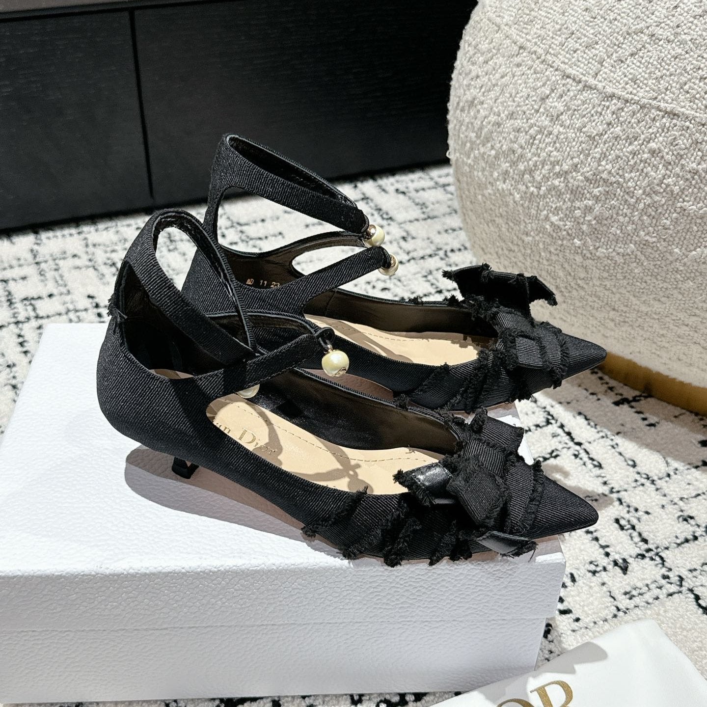 CD Adiorable pump 45 Black Fringed Grosgrain