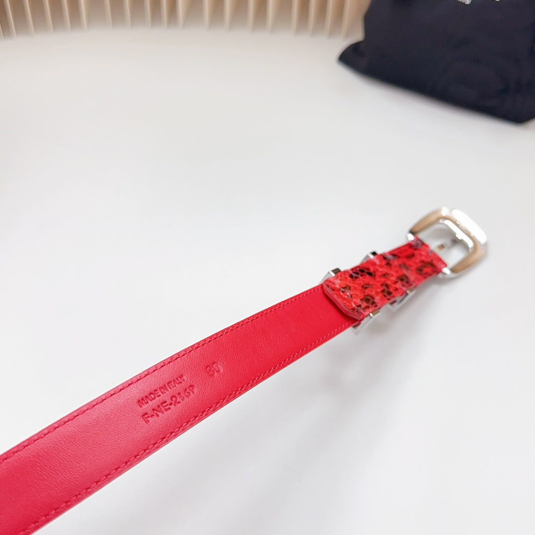 Medium Western Belt 25mm Red Black Snake Embossed Calfskin Silver Loop Shw