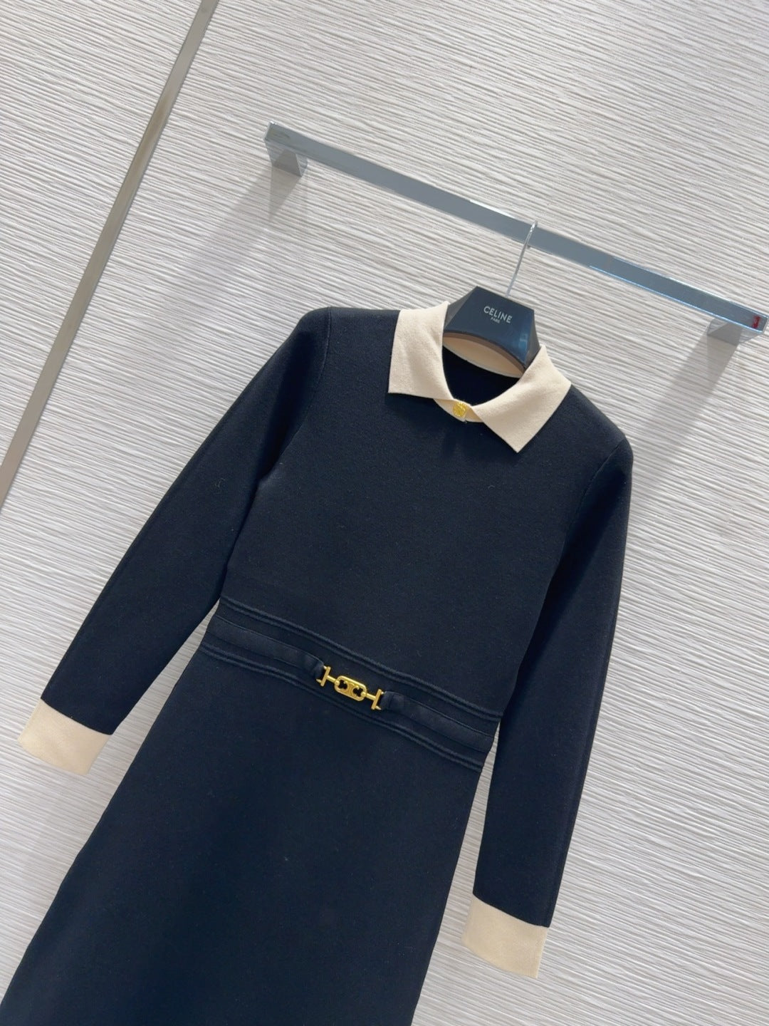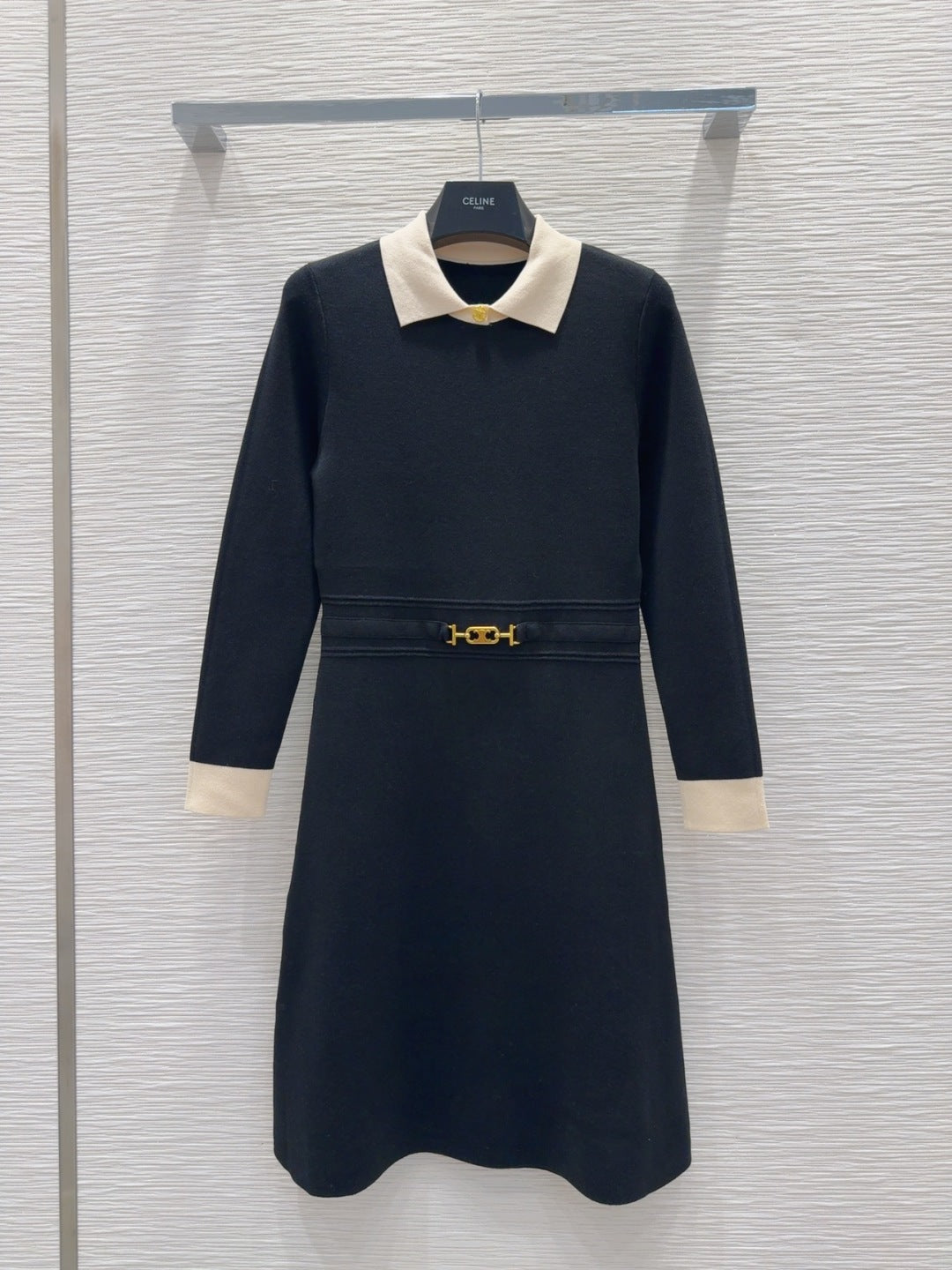 Celine 2025 A-line Dress Black mix White Tencel cotton