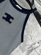 Celine 25 Embroidered Logo Striped Small Vest Navy Blue mix White Cotton