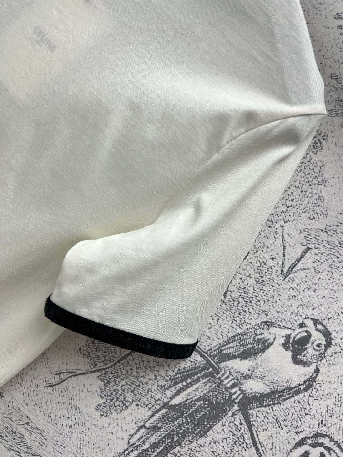Celine 25 Embroidered Logo T-shirt White mix Black Cotton Polyester