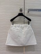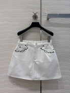 Celine 25 Embroidered Small Flower Skirt White Cotton