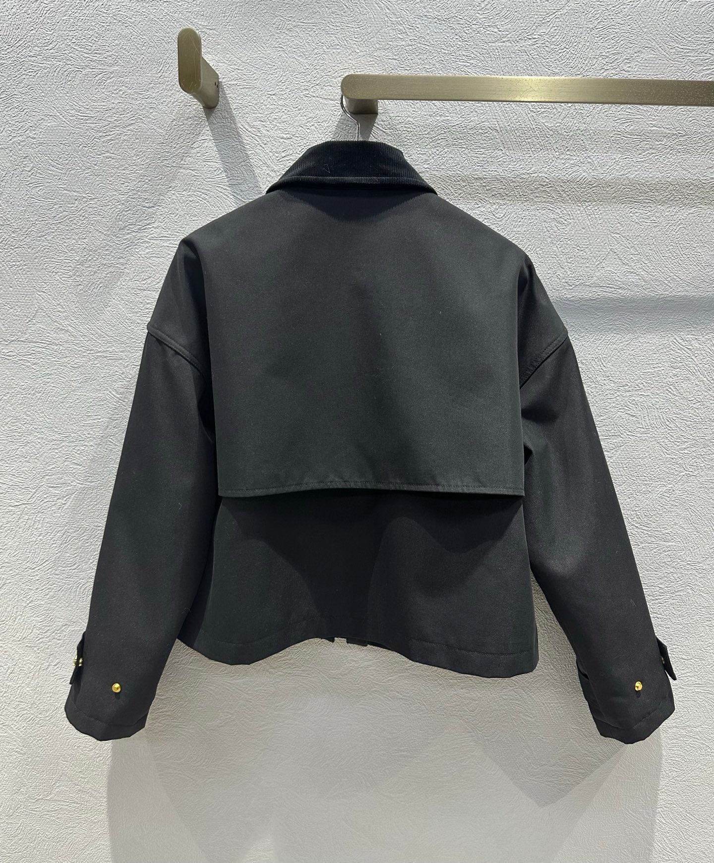Celine 25 Lapel Short Trench Coat Black Gold Cotton Polyester