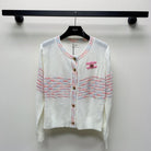 Celine 25 Striped Cardigan White Wool Polyester 281502